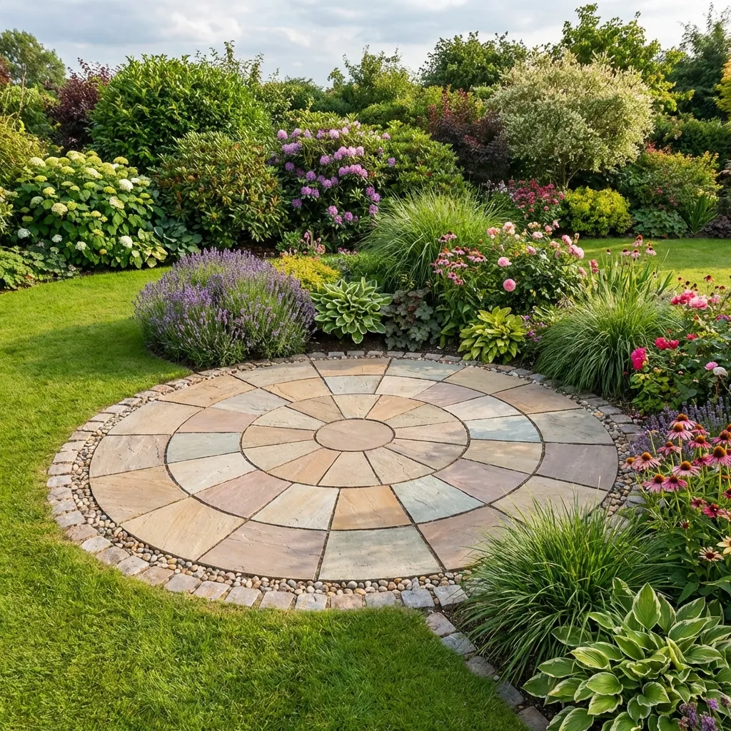 Natural stone paving circles are highly versatile and ideal for creating focal points or decorative features in: