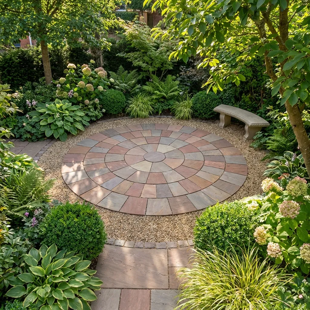Natural stone paving circles are highly versatile and ideal for creating focal points or decorative features in: