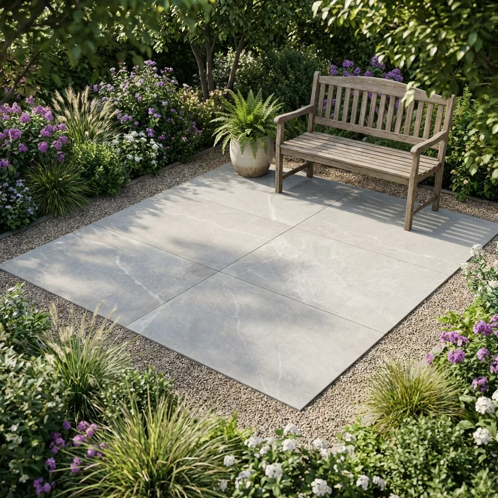 Porcelain is frost-proof and resistant to algae, making it ideal for the UK climate. In autumn and winter, remove fallen leaves promptly to prevent surface debris buildup. Periodic cleaning in spring will refresh the tiles and maintain their original colour and slip resistance.