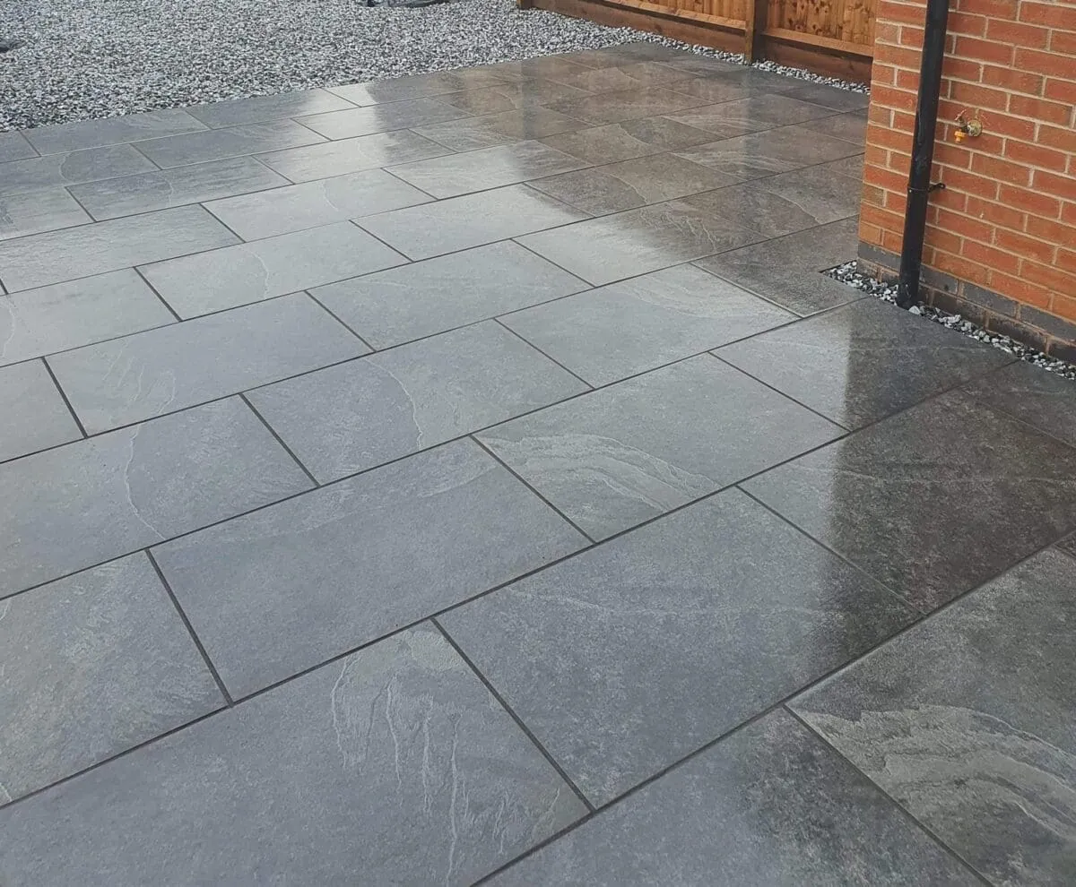 Unlike natural stone, porcelain paving does not require sealing, as it has a vitrified, non-porous surface that resists stains, moisture, and frost. However, you may choose to seal the grout joints for added protection against algae growth and staining.
