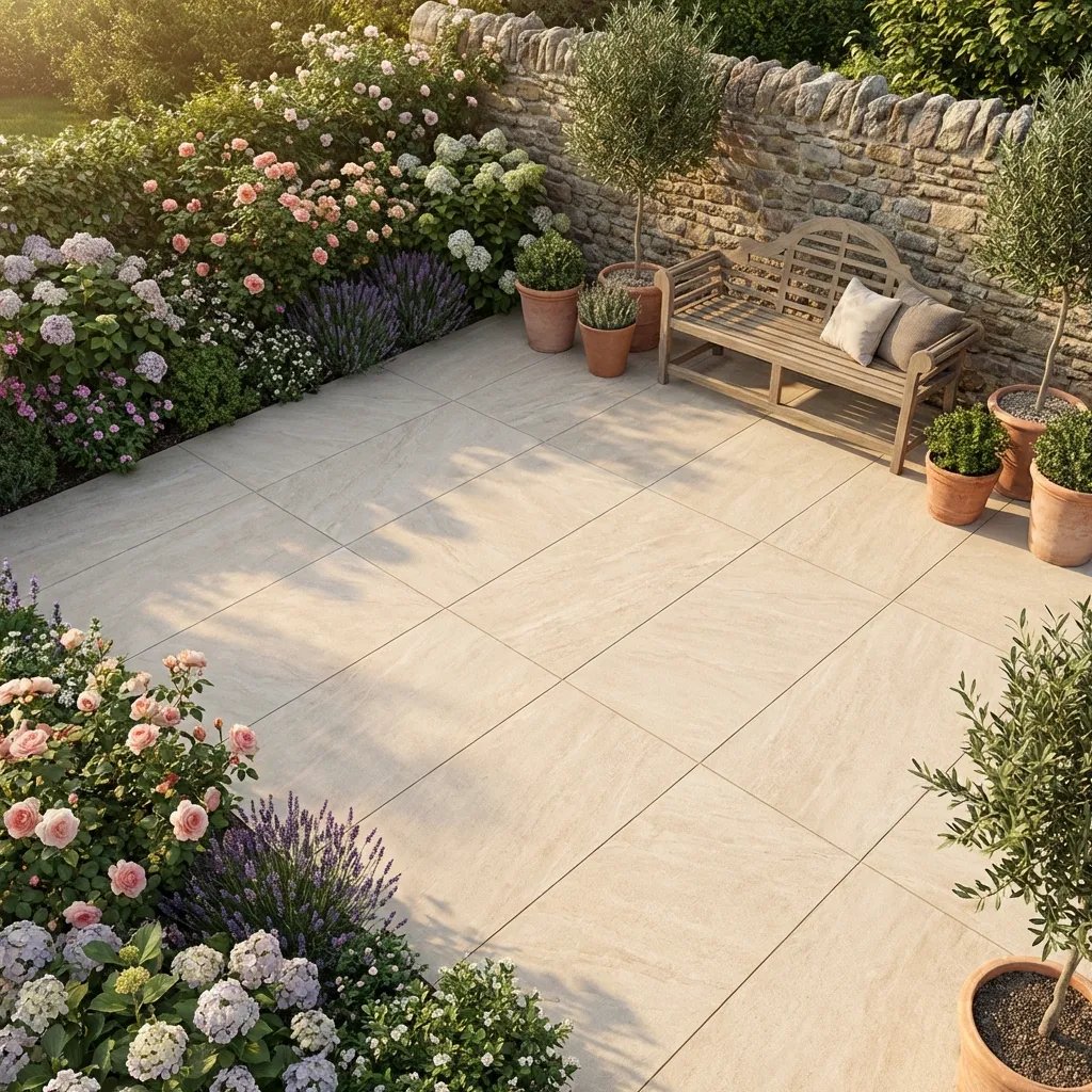 Porcelain is frost-proof and resistant to algae, making it ideal for the UK climate. In autumn and winter, remove fallen leaves promptly to prevent surface debris buildup. Periodic cleaning in spring will refresh the tiles and maintain their original colour and slip resistance.