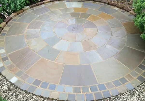 Natural Indian sandstone paving circles are a striking and elegant feature for patios, gardens, and outdoor entertaining areas. Renowned for their rich, warm colours โ ranging from golden yellows and honey tones to deep reds and earthy browns โ each slab is unique, showcasing the natural variation and veining of Indian sandstone. The circular design creates a visually appealing focal point, perfect for pathways, courtyards, or garden patios, while the textured surface provides excellent slip resistance. Durable, weather-resistant, and low-maintenance, Indian sandstone paving circles combine the timeless beauty of natural stone with practical performance, making them an ideal choice for both residential and commercial landscaping projects.