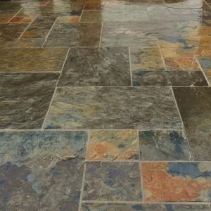 Rustic Copper Slate is popular for its earthly tones and contrasting blends of golds, yellows, rustic oranges, browns and blacks. With its unique rich textures, Copper Slate is perfect for a picturesque patio area. Providing an authentic outdoor space, the striking mulititones create a bold finish, perfect for all outdoor areas.