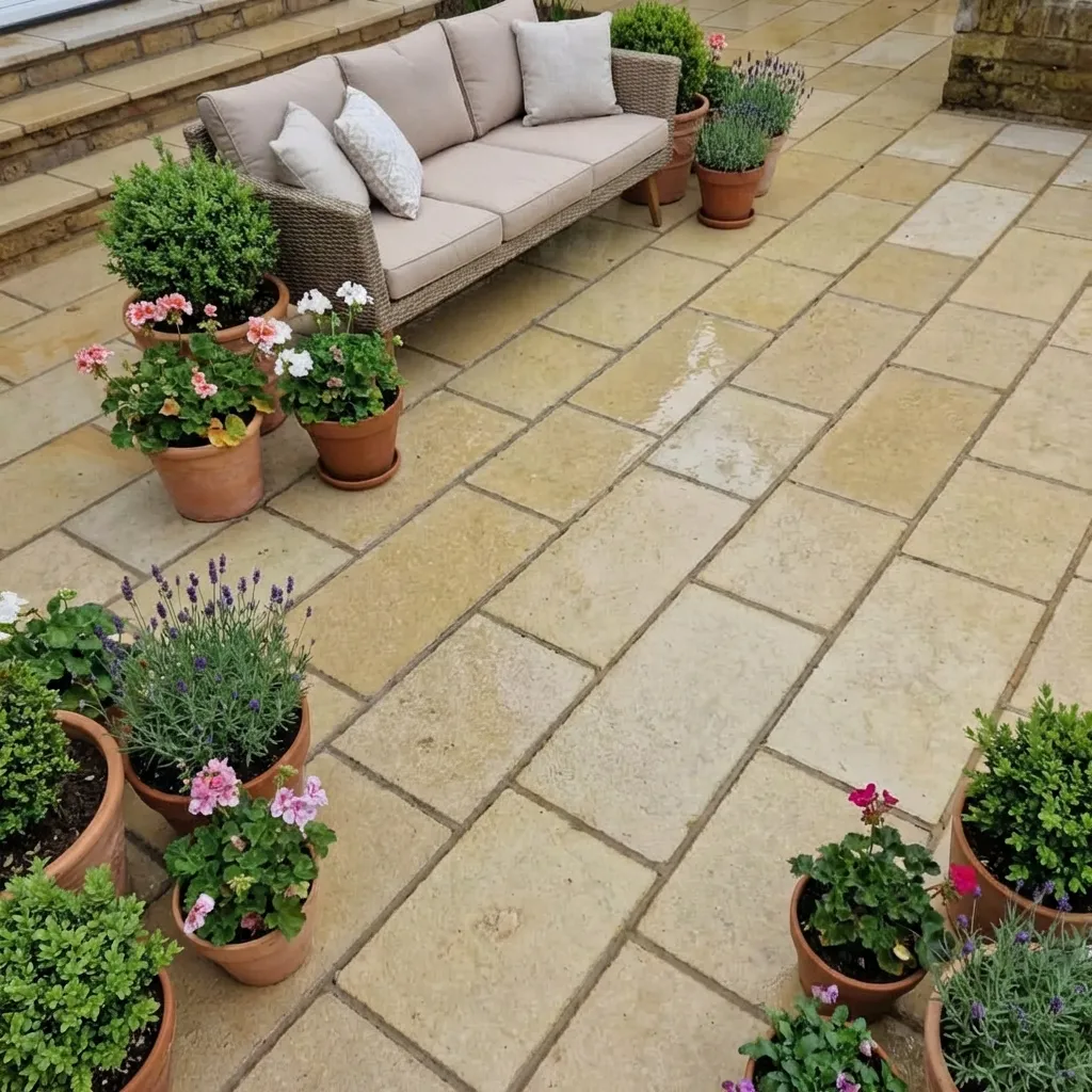 Indian Limestone is slightly porous and will begin to weather naturally once laid, washed, and jointed. Sealing is recommended after a short period to protect the stone and enhance its appearance. Some sealers enrich the colour for a deeper โwetโ look, while others maintain a natural, dry finish โ the choice depends on your personal preference and desired aesthetic.